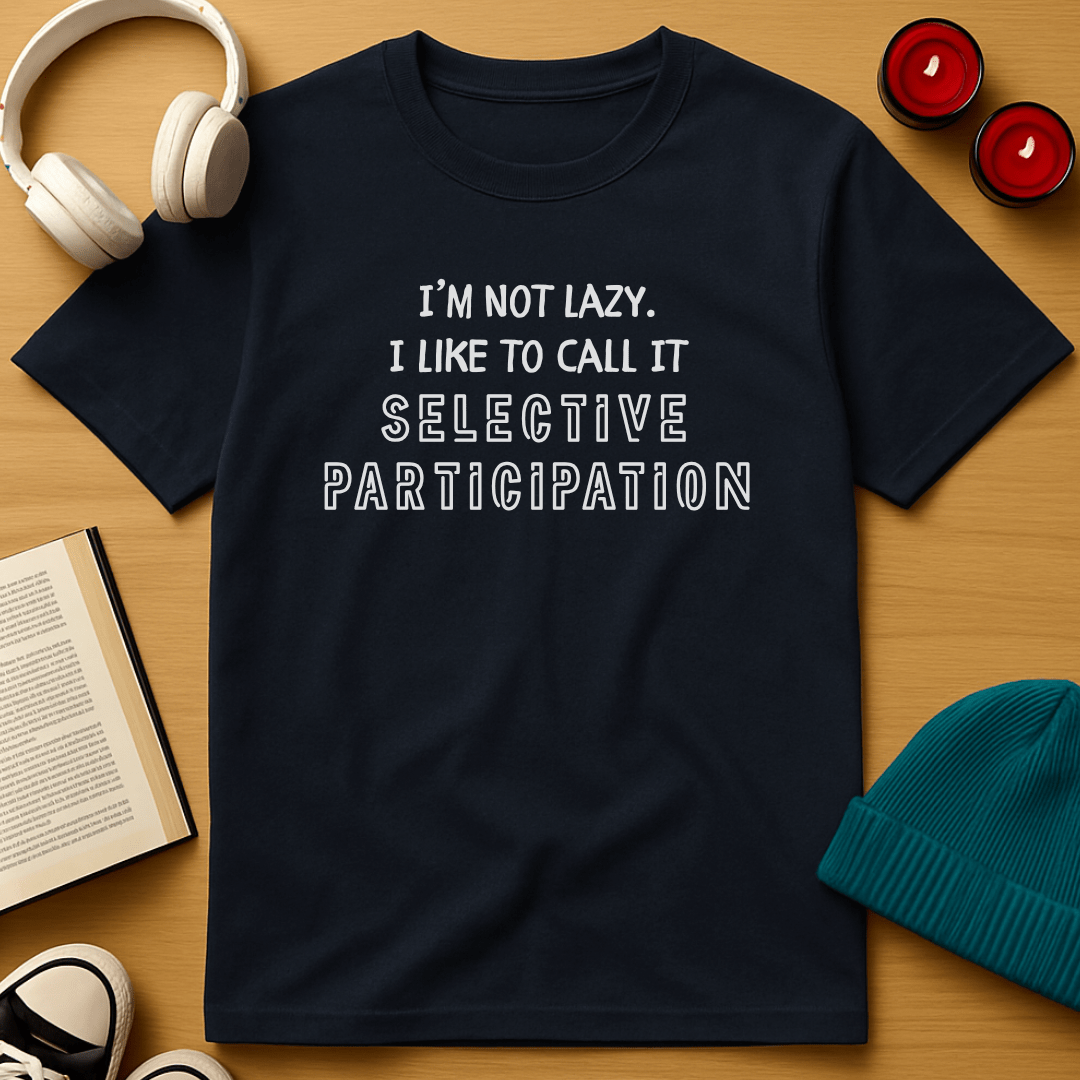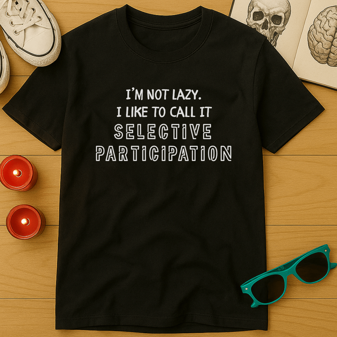 Not lazy. Just extremely efficient with your give-a-damn. This shirt is for those who conserve their energy like it’s a precious natural resource—and frankly, it is. If it doesn’t spark joy, pay bills, or involve snacks, consider it skipped. Because not everything deserves your full attention (or any, really).